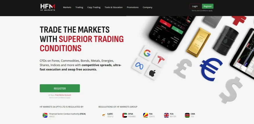 HFM, formerly known as HotForex, is a prominent forex broker that has been operational since 2010. This broker offers South African traders over 1,000 different market products from a variety of asset classes. HFM is licensed and regulated by multiple authorities globally, including South Africa's Financial Sector Conduct Authority (FSCA). Further, HF Markets offers South African traders competitive trading conditions, high leverage of up to 1:2000, and various account options.